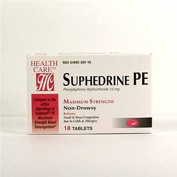 Product Descriptionp/pBR Suphedrine Pseudoephedrine Free Phenylephrine Hydrochloride 10mg Maximum Strength, Non-Drowsy. Relives nasal & sinus congestion due to colds & allergies. Case Pack 24BR-SKU (MODEL): AR_4011726. -Brand Name: Health Care. -Shipping Weight: 15.00 lbs. -Item Condition: new.BR