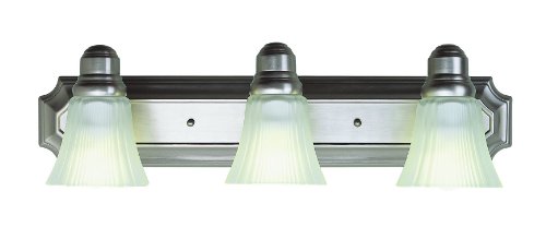 2503 ROB Finish: Rubbed Oil Bronze Pictured in brushed nickel. A perfect Entry-level sconce at unbeatable value. Features: -Three light bath vanity light. -Available in: -Brushed nickel finish. -Rubbed oil bronze finish. . -Clear ribbed glass. -Mounted up or down. Specifications: -Accommodates (3) 100W medium base bulbs (not included). -UL listed. -Overall dimensions: 7'' H x 24'' W x 7'' D.